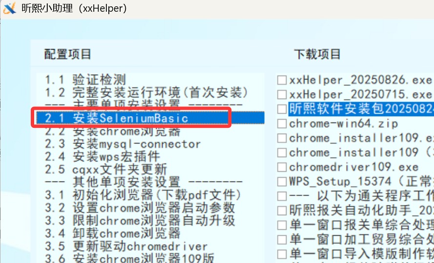昕熙通关软件,均需在经过配置的电脑运行环境中使用,主要包括SeleniumBasic、chrome浏览器、mysql-connector、wps宏插件等应用的安装。