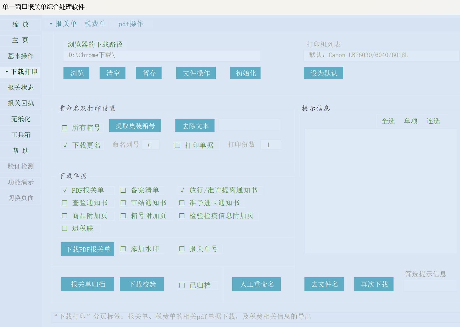 1、建立报关单快速登记本,批量下载pdf报关单、放行、审结及查验通知书等,并可自动添加水印;
